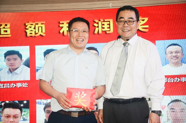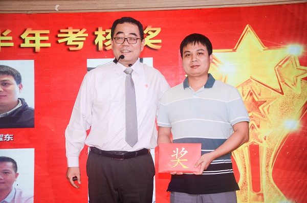 會上,西繼迅達總經理劉剛親自為銷售經理頒發回款獎、大包合同獎、半年考核獎、超額完成任務獎。